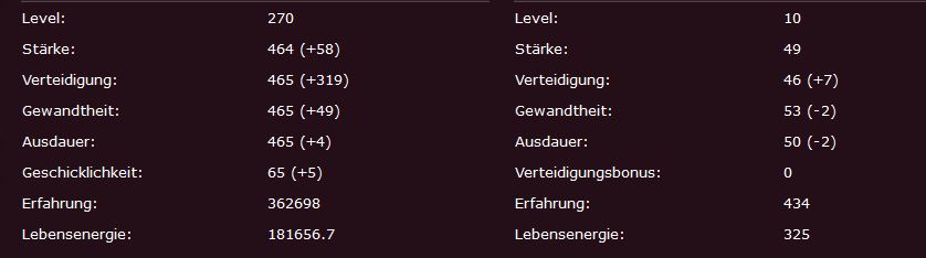 Wieder ein gutes Beispiel, wie man einen so jungen Server auf die Schnelle kaputt kloppt. Genau so macht man es, und da ist Eile geboten, solange es noch ein paar aktive Spieler dort gibt. Immer noch besser als gegen Serverleichen anzutreten. ^^ Wie soll das funktionieren? Premiumspieler mit teils hoch gekauften Skillungen gegen Standard Spieler? Wenn man dann hoffnungslos unterlegen ist, weil man zu solchen Mitteln nicht greift? Das alles niederzuprügeln ist eine Sache, weil es ja ein Kampfspiel ist. Und wie schnell man einen Server kaputt kloppt zeigte ja schon die Vergangenheit, egal ob KF oder MG. Da wird einfach nicht dazu gelernt, wie man es für alle Spieler besser machen könnte, gerade für Neueinsteiger. Aber hoffen wir nächstes Jahr mal auf eine weitere Neue Spielwelt, die da vielleicht eine Änderung bringt. Diesen Server INT 7 gebe ich höchstens noch bis zum nächsten Sommer, dann ist der tot, wenn das so da weiter geht :) PS: Steinhall hat in den letzten Wochen auch seine letzten Atemzüge getätigt, (R.I.P. Steinhall) also weiter so 😗 |