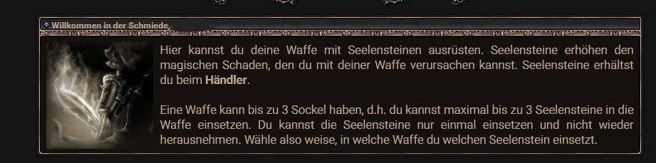 Wo kann ich meine Waffe mit Seelensteinen ausrüsten? Wusste das mal aber habe es wieder vergessen wo ich da hin muss und wie? Hoffe ihr könnt mir da weiterhelfen. |